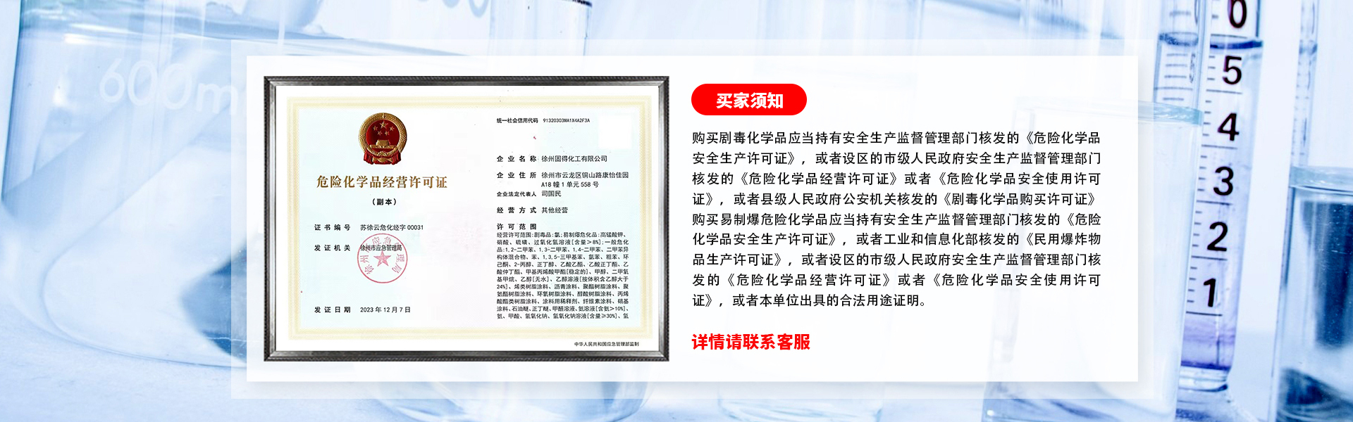 徐州固得化工有限公司是淮海經濟區優質化工原料供應商,公司與多家企業建立了長期穩定的貿易關系,主要經營淮海經濟區徐州、宿遷、淮安、臨沂、連云港、宿州等地的化學品批發,專業從事國家??匾字贫?、易制爆化學品及其它化學品的銷售和服務,公司主營甲基異丙基酮、硫酸二甲酯、焦亞硫酸鈉、純堿、甲醇、甲苯、鹽酸、硫酸等化學品。公司擁有強大的專業物流團隊,為客戶提供標準化的門到門“一站式”化學品綜合物流服務。公司始終秉承“品質至上、誠信致遠、鑄就中國化工行業先鋒”的經營理念,以產品的過硬質量為根本,快捷安全的服務為宗旨,為客戶創造價值,誠信共贏!